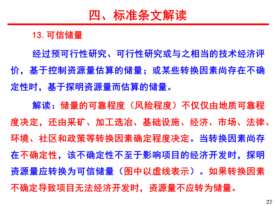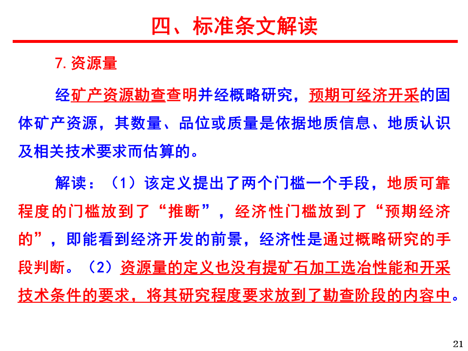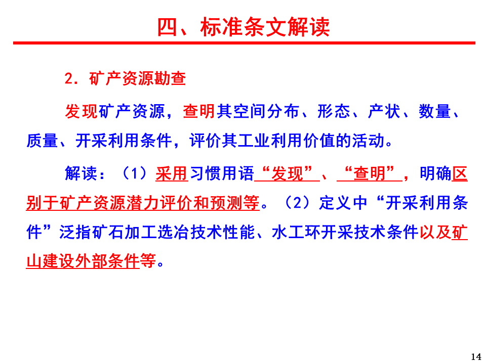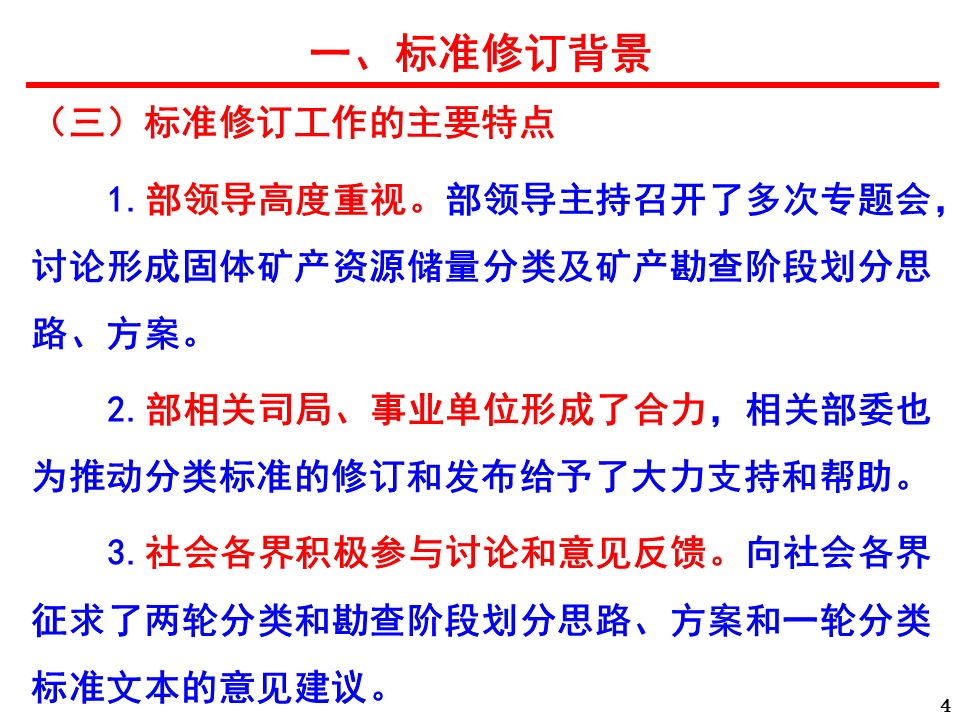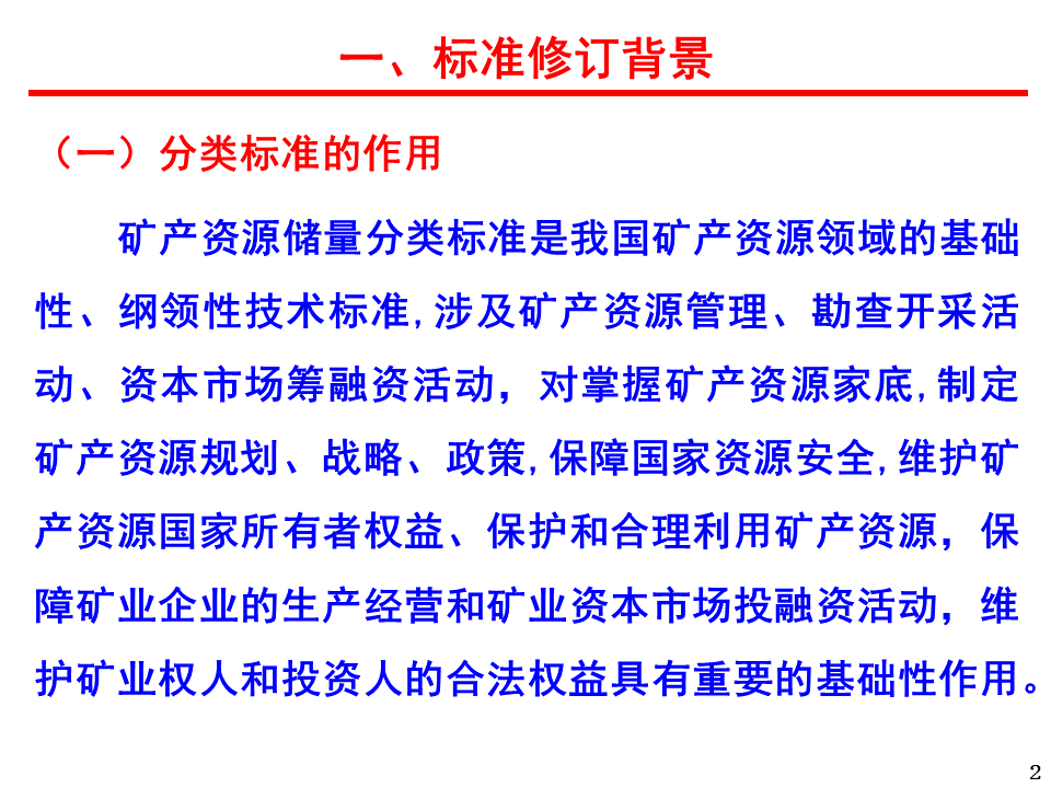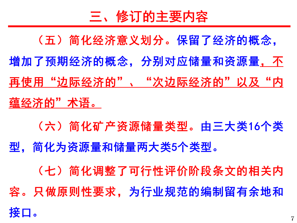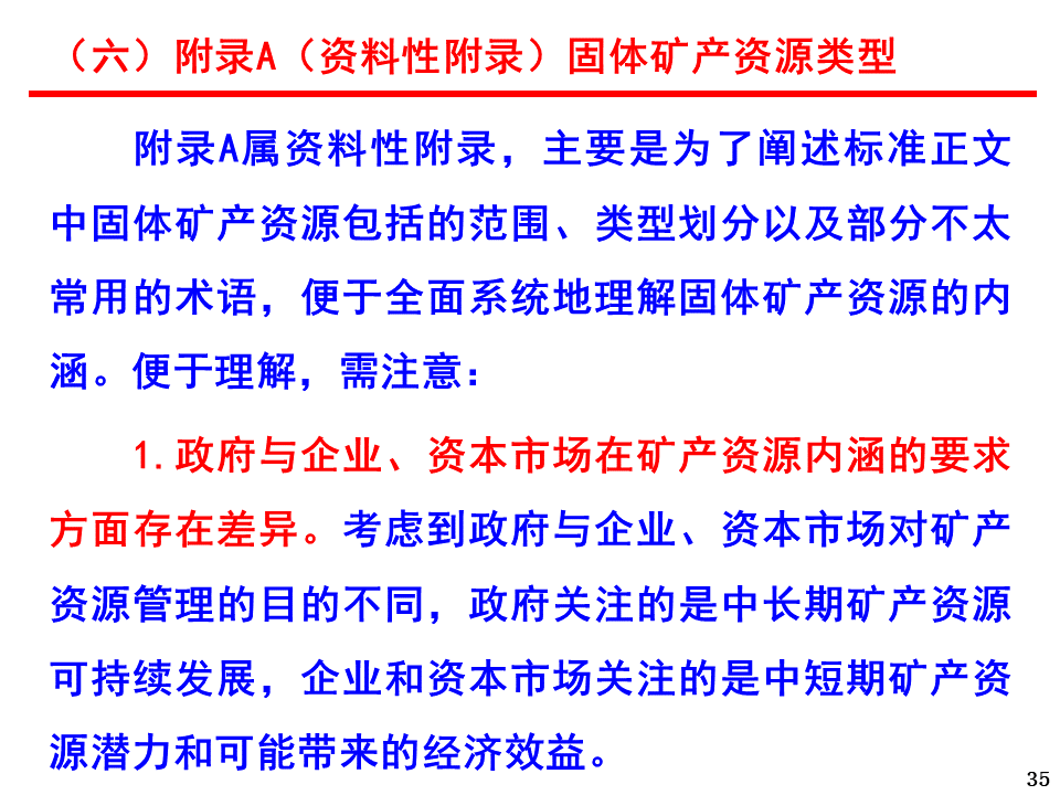 此次新公布的《固體礦產(chǎn)資源儲(chǔ)量分類》主要內(nèi)容包括:范圍;術(shù)語(yǔ)和定義;資源量和儲(chǔ)量類型劃分;資源量與儲(chǔ)量的相互關(guān)系;資源量和儲(chǔ)量的公開(kāi)發(fā)布。新的儲(chǔ)量分類國(guó)家標(biāo)準(zhǔn)是針對(duì)我國(guó)礦產(chǎn)資源管理、市場(chǎng)投融資、企業(yè)生產(chǎn)經(jīng)營(yíng)、國(guó)際合作等需要,為最大化降低社會(huì)認(rèn)知和信息交易成本,對(duì)1999年固體礦產(chǎn)資源儲(chǔ)量分類國(guó)家標(biāo)準(zhǔn)作出重要改革并予以修訂。